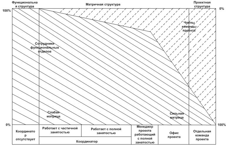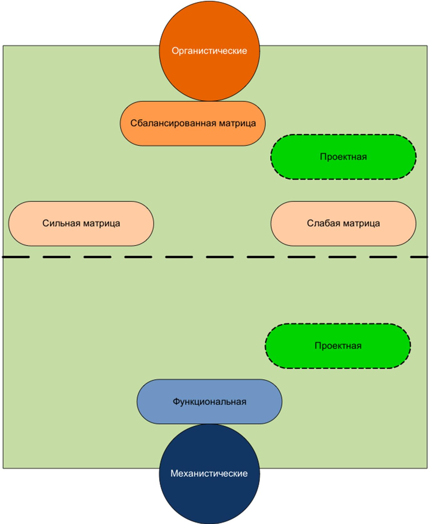 Если основные механизмы управления и непосредственные источники основных ресурсов проекта находятся в рамках одной организации, то необходимо создавать внутрифирменную организационную структуру управления проектами, каким-либо образом согласуя при этом «материнскую» структуру с новой, проектной структурой.
