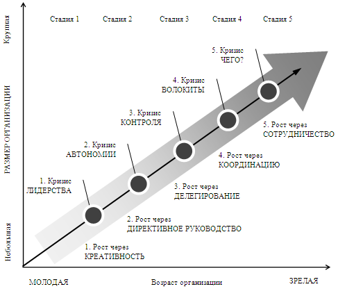 · модель жизненного цикла организации Л. Грейнера;