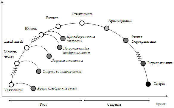 [78] Как вы помните, процесс изменения состояния описывается понятием «жизненный цикл организации», где каждая стадия характеризуется определенными ценностными установками, особенностями управленческих механизмов и др.