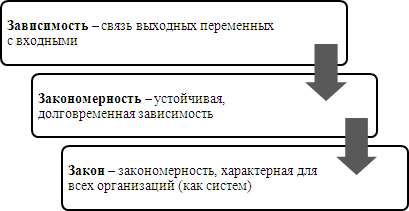 Вопрос 1. Понятие зависимости, закономерности и закона в теории организации.