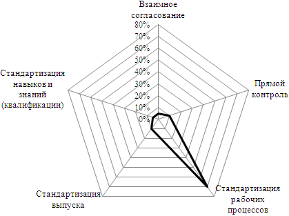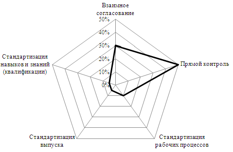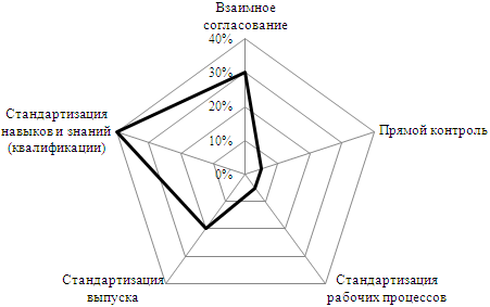 [97] Лепестковая диаграмма представляет приближенное распределение долей (в процентах) координационных механизмов, характерное для конкретной организации; сумма всех значений всех равна 100%.
