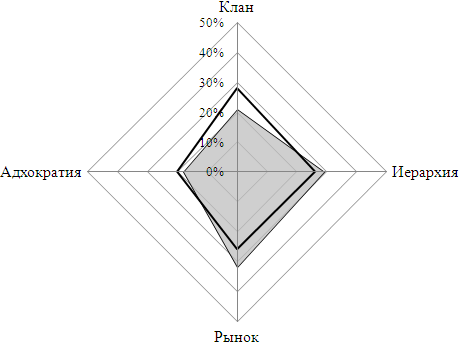 [118] По результатам анкетирования более 1500 сотрудников восьми российских компаний с использованием методики OCAI: Чанько А.Д. Опыт диагностики организационной культуры российских компаний. // Российский журнал менеджмента. Том 3, №4, 2005.
