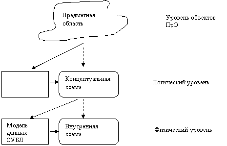 На рис. 3.2б выделена логическая схема, учитывающая особенности СУБД.