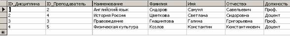 В качестве еще одного примера рассмотрим помещение в новую таблицу «Преполаватель_дисциплина» информации о том, какой преподаватель какую дисциплину ведет.