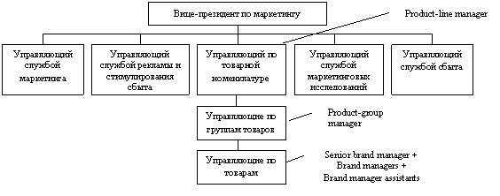Фирмы с широкой товарной номенклатурой и/или разнообразием марочных товаров используют организацию по товарному или товарно-марочному производству, впервые примененную в 1927 году компанией Procter & Gamble.