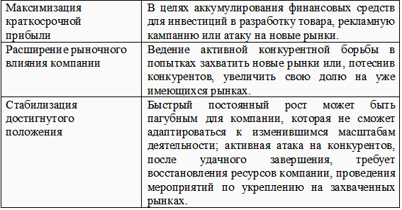 рыночного влияния компании. Стабилизация достигнутого положения. Основные