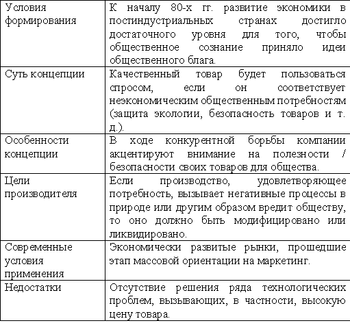 товара. Потребительская концепция. Концепция социально-этического маркетинга.