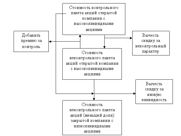 контрольных и неконтрольных пакетов акций и согласование результатов оценки