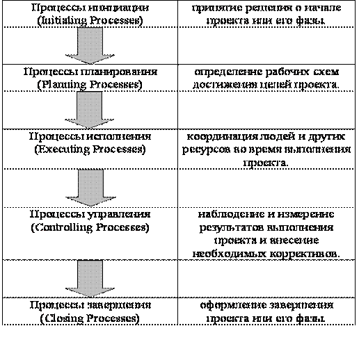 На рисунке 1.3. изображена последовательность процессов проекта с описание отдельных групп процессов.