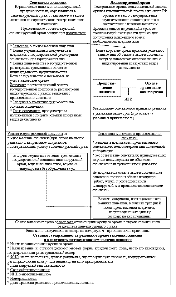 Для наглядности схематически процедуру лицензирования можно представить в виде таблицы № 3.