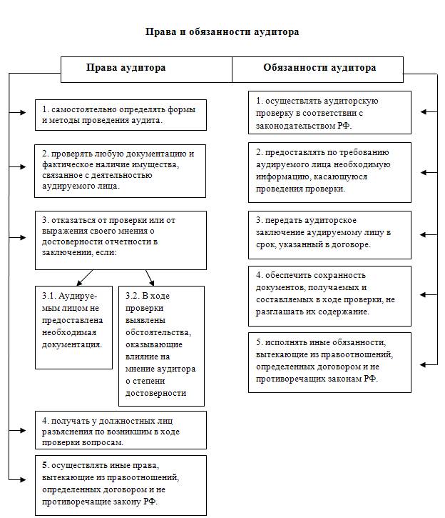 Права и обязанности аудитора схематически можно представить в таком виде таблицы № 5.