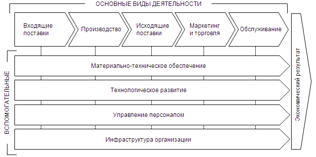 Таким образом, анализ стоимостных цепочек, как этап комплексного ситуационного анализа, имеет целью оценить стоимостную конкурентную позицию организации и выявить направления деятельности по снижению издержек во всех звеньях стоимостной цепочки для укрепления конкурентной позиции.