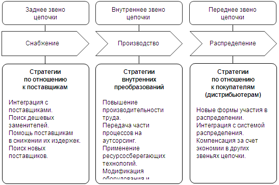 · компенсировать высокие внутренние издержки экономией в передней и задней частях цепочки.