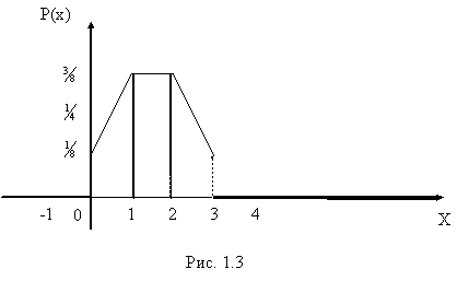 Графическое изображение ряда распределения называется многоугольником /полигоном/ распределения. Для его построения возможные значения xiслучайной величины откладываются по оси абсцисс, а вероятности - по оси ординат; точки с координатами (xi, pi) соединяются отрезками /рис.1.2/.