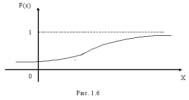 График функции распределения для непрерывной случайной величины называется интегральной кривой распределения и имеет, например, вид, указанный на рис. 1.6: