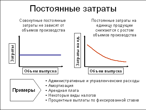Важная особенность постоянных затрат заключается в том, что большинство из них предприятие вынуждено покрывать в любом случае, независимо от уровня деловой активности, рыночной конъюнктуры, результатов хозяйственной деятельности и т.п.