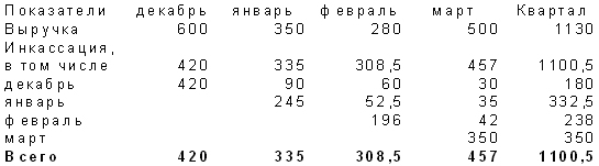 Осуществим разработку кассового бюджета для нашего примера, исходя из следующих условий.