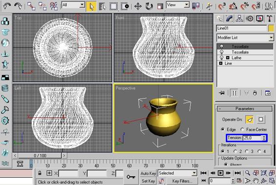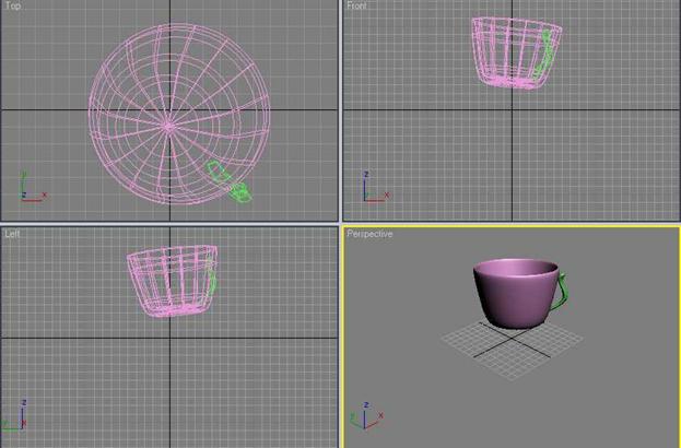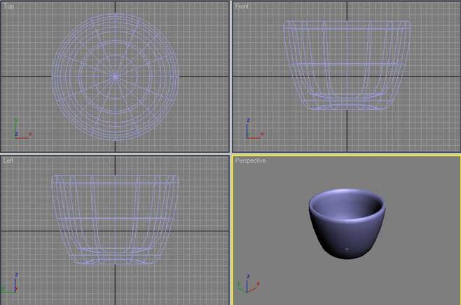 1. Моделирование – на данном этапе в окнах проекций создаются объекты. Их также можно импортировать из другого графического пакета. Управляя параметрами объекта, трансформируя и модифицируя его, в конечном счете вы должны получить необходимую 3D-модель. Существует несколько техник моделирования, начиная от простого создания объектов из полигонов (треугольные грани, на которые делится поверхность объекта) и заканчивая современным NURBS-моделированием (создание точных поверхностей, которые описываются трехмерными кривыми).