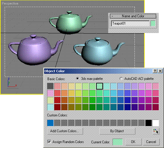 Все объекты имеют уникальные свойства такие, как: имя, цвет, присвоенный материал. Эти свойства следует рассматривать как самостоятельные, так как они не являются ни базовыми параметрами объекта, ни результатом воздействия модификаторов или трансформаций.
