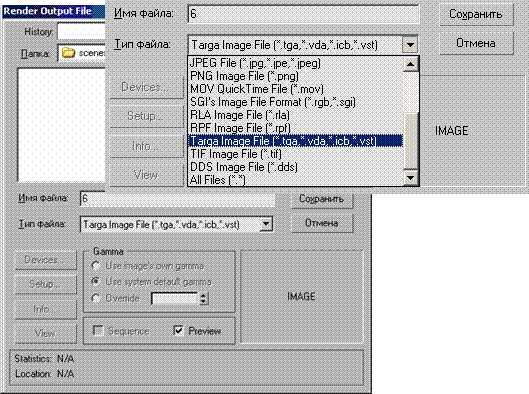 Рис. 4.74. Сохранение результатов визуализации в файле