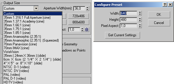 Щелчком правой кнопкой мыши по одной из кнопок стандартного разрешения раскрывается диалоговое окно «Выбор стандарта» (Configure Preset). Выпадающий список в этой группе содержит используемые в различных приложениях стандарты разрешений и пропорций. Из списка Output Size пользователь может выбрать параметры различных фото-, кино- и видеостандартов (Рис. 4.76).