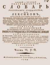 Новый и полный географический словарь Российского государства. Часть 6. 1789 г. // «МегакампусЪ». Электронная библиотека