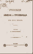 Соколов А. Русские имена и прозвища в XVII в. / А. Соколов. — Казань, тип. Императорского ун-та, 1891. — 16 с. |