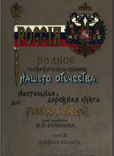 АННОТАЦИЯ. «Россия. Полное географическое описание нашего отечества. Настольная и дорожная книга для русских людей» — многотомное издание, выходившее под общим руководством П.П. Семенова-Тян-Шанского