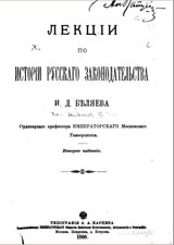 Беляев И.Д. Лекции по истории русского законодательства / И.Д. Беляев. — 2-е изд. — М.: Тип. А.А. Карцева, 1888. — 584 c. |