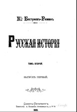 Бестужев-Рюмин К.Н. Русская история. В 2 т. Т. 2. Вып. 1 / К.Н. Бестужев-Рюмин. — СПб.: тип. А. Траншеля, 1885. — 330 с. |