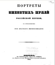 Портреты именитых мужей российской церкви с приложением их краткого жизнеописания. — М.: Тип. Августа Семена, 1843. — 80 с.: ил. |