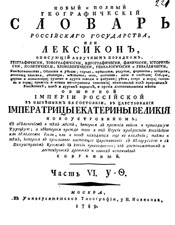 Новый и полный географический словарь Российского государства. Часть 6. 1789 г. // «МегакампусЪ». Электронная библиотека