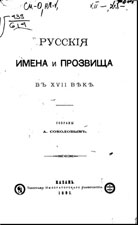 Соколов А. Русские имена и прозвища в XVII в. / А. Соколов. — Казань, тип. Императорского ун-та, 1891. — 16 с. |