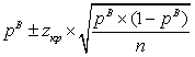 Здесь zкр является значением, полученным из нормального распределения по специальным таблицам (например, 1,96 для 95%-й доверительного интервала).