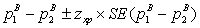 . Следовательно, доверительный интервал этой разности выражается как:
