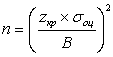 Формула для размера выборки при оценке доли выглядит следующим образом: