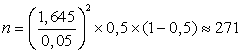 Пусть менеджер из предыдущего примера планирует оценить долю клиентов, отдавших предпочтение новому виду продукции. Он хочет построить 90%-й доверительный интервал, половина длины которого не превосходила бы 0,05. Сколько клиентов должно войти в случайную выборку?