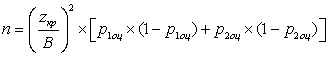 Формула для определения размера случайной выборки в случае оценки разности между долями имеет вид: