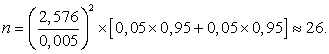 Поскольку формула дает, вообще говоря, нецелочисленные результат, в качестве искомого размера выборки берется округление с избытком результата.