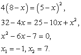 Пусть х = -1, тогда левая часть исходного уравнения равна -6. Таким образом, х = -1 — посторонний для исходного уравнения корень, появившийся в процессе решения из-за применения неравносильных преобразований. Пусть теперь, х = 7. Тогда исходное уравнение превращается в верное числовое равенство. Исходное уравнение, таким образом, имеет единственный корень х = 7.