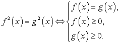 . Множество корней этого уравнения — все действительные числа. При этом простая проверка показывает, что отрицательное число не может быть корнем исходного уравнения. Таким образом, в процессе решения были применены неравносильные преобразования и появились посторонние корни. Действительно, возведение обоих частей уравнения в четную степень является равносильным преобразованием только в том случае, если обе части уравнения неотрицательны.
