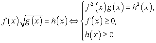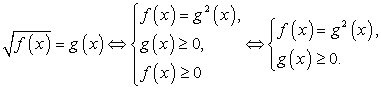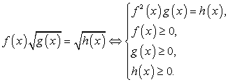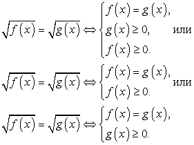 Рассмотрим схемы равносильных преобразований для иррациональных уравнений основных видов.