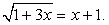 Возведя обе части уравнения в квадрат, получаем 1 + 3х = x2 + 2х + 1, т.е. уравнение x2 – х = 0. Его корни x1 = 0 и x2 = 1. Подставляя каждый из найденных корней в исходное уравнение, убеждаемся, что оба они являются его корнями.