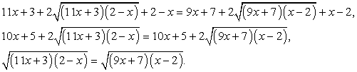 Возведем обе части уравнения в квадрат и приведем подобные слагаемые: