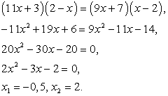Перепишем уравнение, разложив квадратные трехчлены на множители: