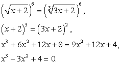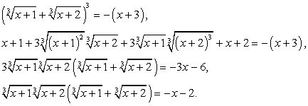 Рассмотрим далее примеры решения иррациональных уравнений с корнями степени, большей, чем вторая.