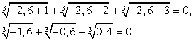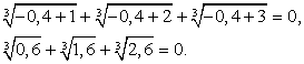 Ясно, что это числовое равенство неверно, поскольку все три значения корней положительны, а сумма положительных чисел не может быть равна 0.