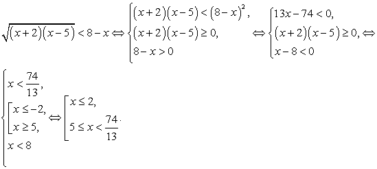 Непосредственной подстановкой в исходное уравнение всех найденных значений х, приходим к выводу, что только х = 5 является корнем данного уравнения.