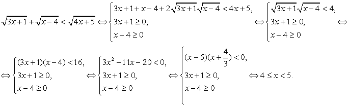 Иными словами, происходит расширение области определения уравнения. Это причина появления посторонних корней. Поэтому все корни итогового уравнения, полученного в ходе решение, следует проверить на принадлежность области определения исходного уравнения. В нашем случае область определения исходного уравнения задается системой:
