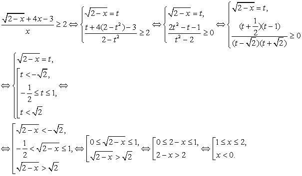 На этом примере мы также как и в предыдущем случае посмотрим особенности применения метода введения новой переменной при решении иррациональных неравенств.